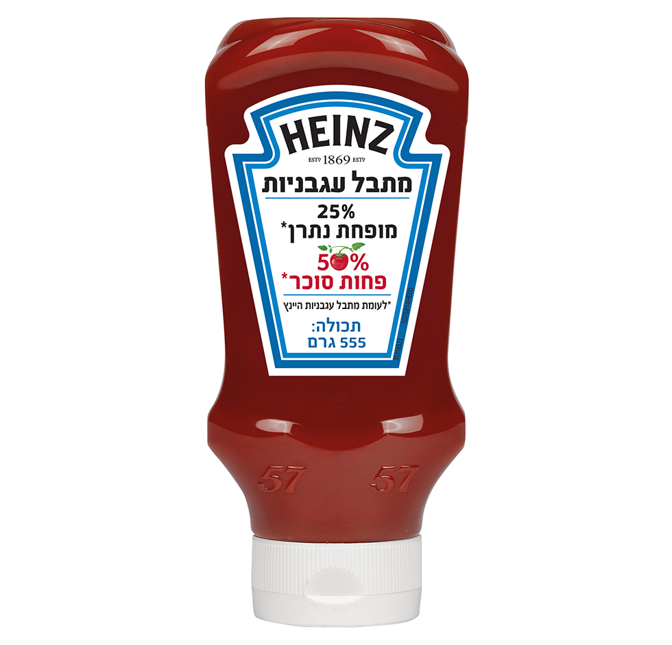 היינץ משיק קטשופ המופחת ב- ל50% פחות סוכר, 25% מופחת נתרן. המוצר החדש מכיל ממתיקים ממקורות טבעיים וכן מצמח הסטיבייה. מחיר באריזת 555 גרם. המחיר - בין 10.90 ל- 11.90 שקל.