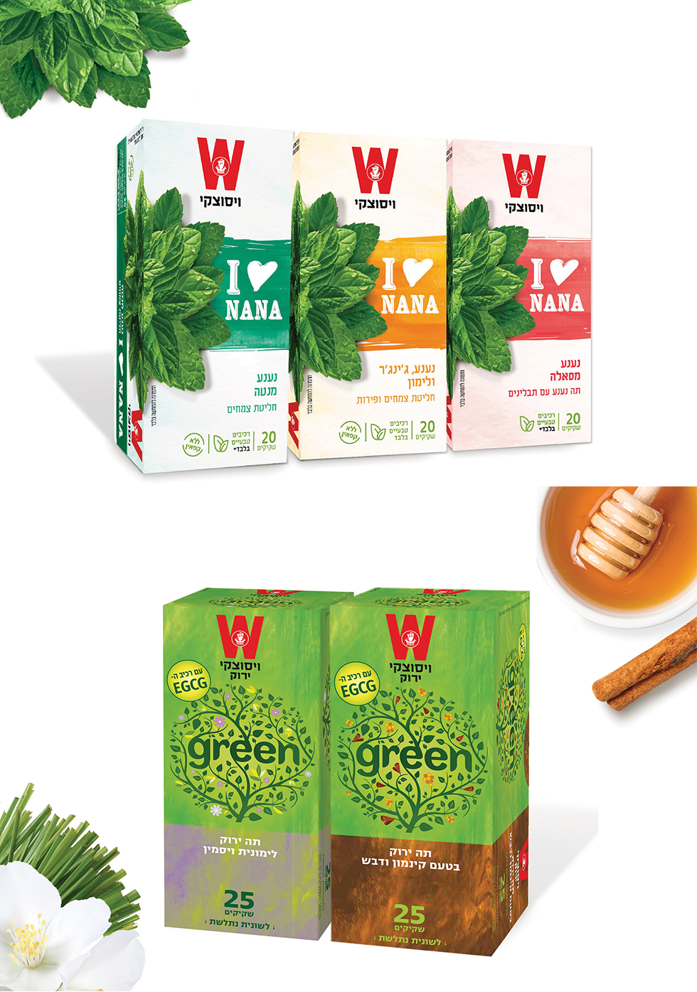 ויסוצקי משיקה שני טעמים חדשים בסדרת התה הירוק: ירוק לימונית ויסמין וירוק קינמון ודבש. המחיר - בין 14.90 – 27.70 שקל לאריזה המכילה 25 תיונים. בנוסף, סדרה חדשה במגוון טעמים שכולם על בסיס צמח הנענע - I LOVS NANA . בסדרה 3 מוצרים: חליטת נענע ג'ינג'ר ולימון, נענע מנטה ותה נענע מסאלה. מחיר מומלץ - 10.90 שקל ל-20 שקיקים.