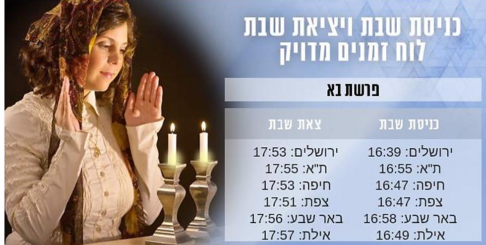 זמני הדלקת הנרות ויציאת השבת