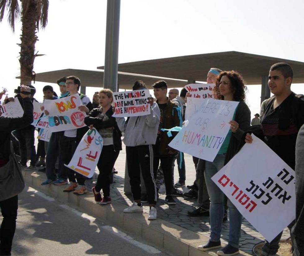 אותו שבוע התחיל במפגש כיתתי משותף, בו כל תלמידי כו"ח נפגשו לדבר על המצב בסוריה וכל אחד השתתף בפעילות אחרת שהייתה קשורה לסוריה: חלק מהתלמידים עבדו על כתיבת מסרים שחשוב לנו להעביר לעולם. כתבו משפטים בשפות שונות: רוסית, ערבית, אנגלית ועברית. כתבו: "תעצרו את המלחמה בסוריה", "די לאדישות!", "העולם שותק- אנחנו לא".