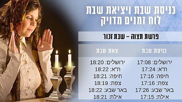 פרשת תצוה: זמני הדלקת הנרות ויציאת השבת