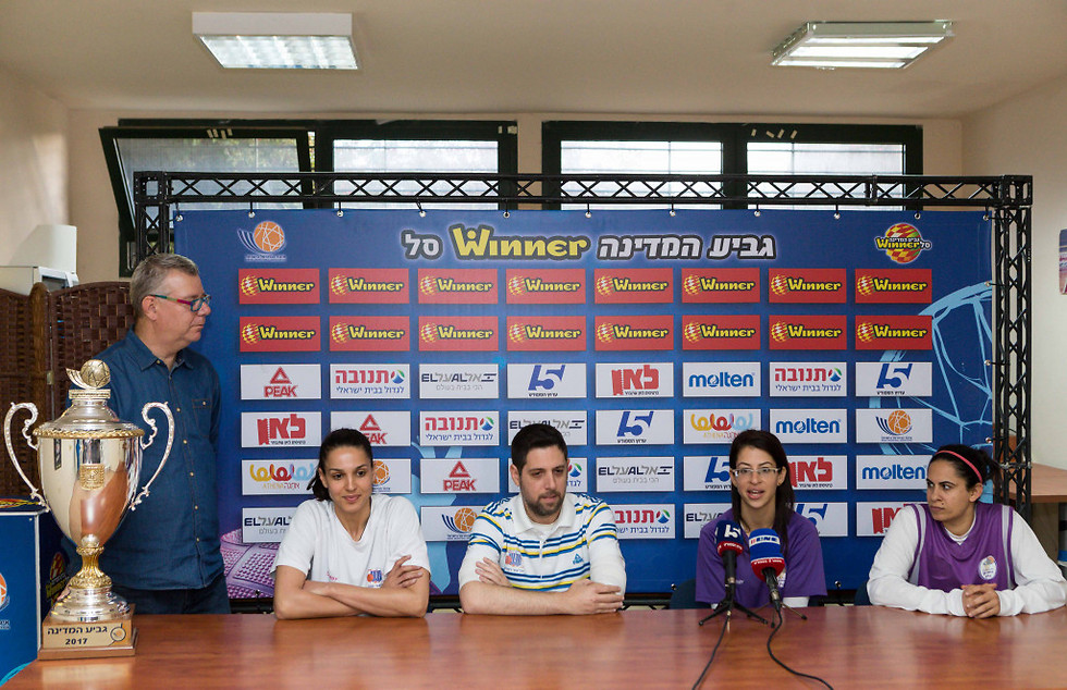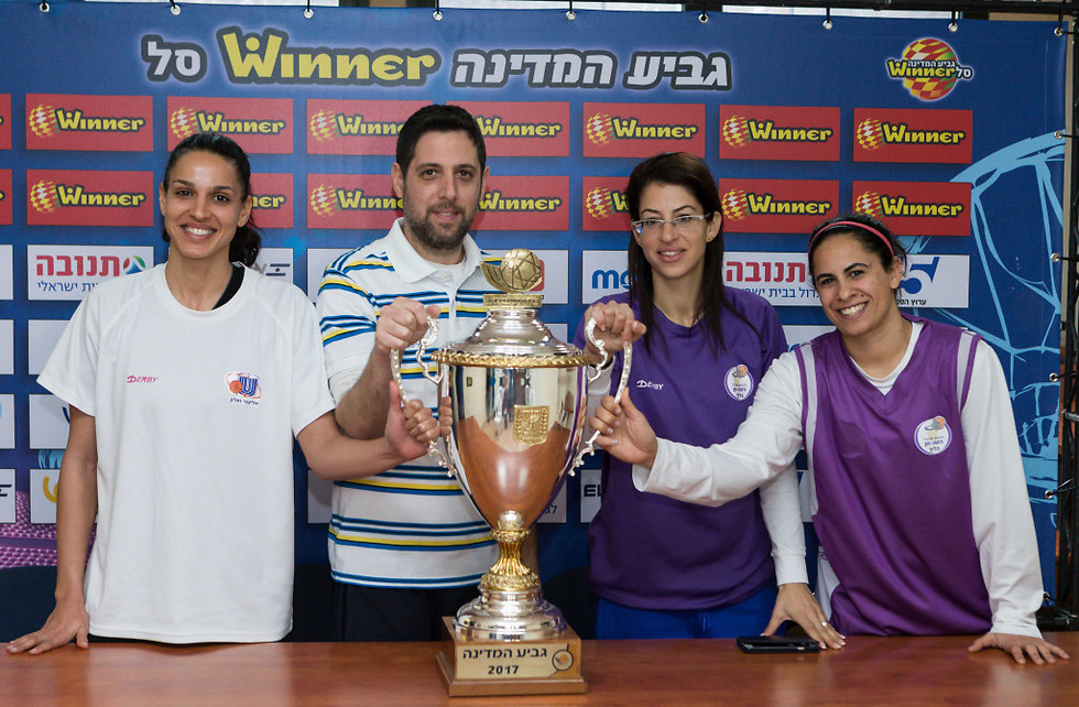 כולן רוצות את הגביע. איזנברג, העליון, אורן וצעירי (צילום: עודד קרני, איגוד הכדורסל)
