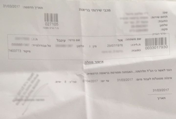 אישורי המחלה שהציגה ענבל אור ל"ידיעות אחרונות":