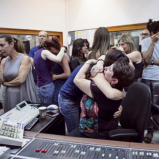 קצת לפני השעה שבע בערב הגיעו לאולפן רשת ב' בירושלים עובדים רבים שלא היו במשמרת כדי להגיד שלום בפעם האחרונה. הם עמדו במרכז הדסק, התחבקו וניסו לנחם ולהתנחם.