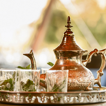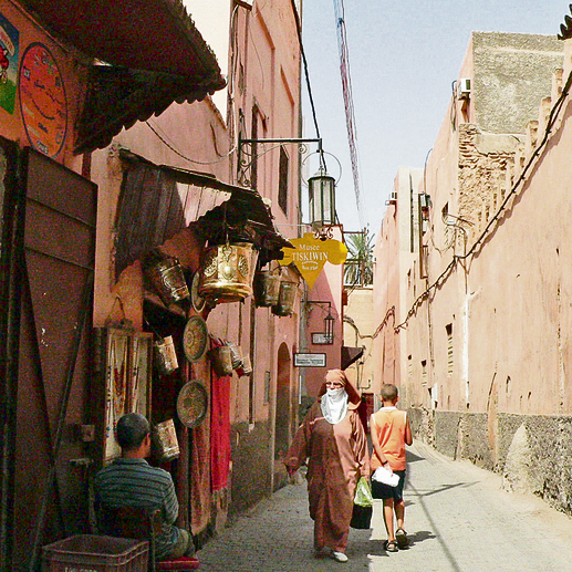 אדם חושב שכבר ראה הכל, אבל אז שמים לו מגש על הראש. ופינג'אן. ונר. וכוסות. עם תה. הבראד - ככה קוראים לבית הקפה שהונח עלי בהפתעה - הוא קיצוני, מקסים וחד פעמי, פחות או יותר כמו מרקש עצמה. בשביל אורח מערבי העיר הזו היא מתקפה על כל החושים: ממוקמת למרגלות הרי האטלס שפסגותיהם מושלגות, אבל גם נושקת למדבר סהרה. יחד עם השמים הכחולים מדי, הדקלים הירוקים מדי והבתים שכולם צבועים ורוד (לכן היא מכונה לפעמים "העיר האדומה"), התחושה היא שמישהו השתולל עם הפוטושופ.