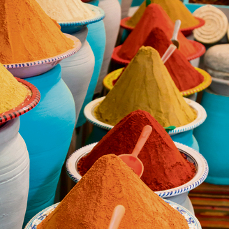 מרוקו היא ה־מקום ב־ה' הידיעה לקנות בו תבלינים. הדוכנים המקומיים מתפקעים מתוצרת שתסחרר כל חובב מזון: זיתים מכל הסוגים והמינים, לימונים משומרים וערימות של תבלינים כולל גולת הכותרת, זעפרן, כמו גם הגאווה של מרוקו, שמן ארגן. לוי כהן: "על איכות התבלינים בשווקים הפתוחים לא הייתי ממליצה. חנות מוצלחת היא זו של חסן פילאלי – מול קברי הסעדנים ברחוב דה לה־קסבה 57. שם יש צמחי מרפא, משחות, תבלינים, כולל זעפרן, צבעים טבעיים לציור ועוד. במקום נערכת הדרכה על התבלינים וצמחי המרפא בכל השפות, כולל בעברית".