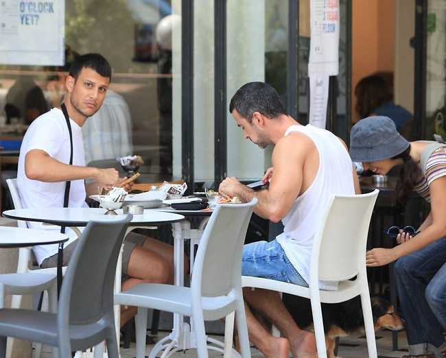 בזמן שאנחנו חיפשנו מקום ללגלום בו את הקפה הראשון של הבוקר, אסי ואלברט, שחגגו בחודש יוני האחרון שנת נישואים ראשונה, פתחו את היום שלהם בארוחת בוקר זוגית בבית הקפה השכונתי, ואליהם הצטרף גם הכלב עמוס. אז נכון, אולי הטיימינג שלנו לא היה הכי מוצלח, אבל מודים שקצת נעלבנו שלא זכינו לסטורי עם עזר.