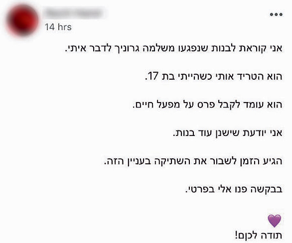 תלונה: "שלמה גרוניך הטריד אותי מינית"