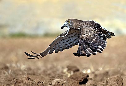 חיוויאי הנחשים (Circaetus gallicus) צילום: ניסים לוי, מודיעין. החיוויאי צולם בצייד בעת החריש בשדות קיבוץ גלאון שבשפלת יהודה, ביוני 2009