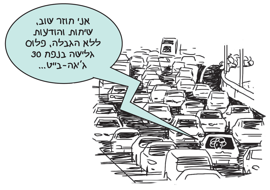ברגע שהבנתי שההצעה לטובתי, ניסיתי לאשרר אותה במהירות לפני שאיאלץ לשמוע את כל היסטוריית הגלישה שלי וכל מה שצפוי לי בעתיד. החל ממחלף ההלכה ועד מחלף קיבוץ גלויות – חצי שעה בפקקים – ניסיתי לסיים את השיחה בעזרת מילים כמו: ״נהדר, אז... תודה רבה, אז... יופי, אז...״ אבל זה לא עזר, כי בקורס הטרחנות מלמדים את אנשי המכירות שהם חייבים לחזור על הפרטים הקטנים והג׳יגה-בייטים הגדולים שוב ושוב על מנת למנוע תביעות מסוג "לא ידעתי".