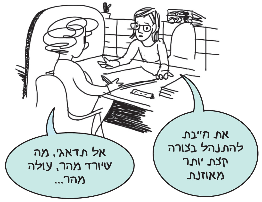 היא שתקה רגע. חשבתי שהיא עומדת לפרוץ בבכי. "אל תדאגי", מיהרתי להרגיע אותה, "אני סתם..."