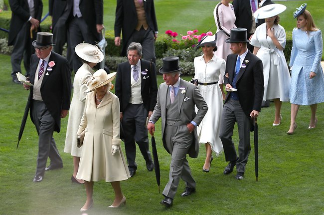מירוץ הסוסים היוקרתי הרויאל אסקוט, יצא לדרך אתמול (ג') ודרי בית המלוכה כיבדו את האירוע בנוכחותם. המלכה אליזבת' היממה בצהוב, הנסיך צ'ארלס הגיע בליווי קמילה פארקר בולס והנסיכות יוג'יני וביאטריס הוזמנו גם הן. אבל כמו בכל אירוע מלכותי שנערך בחודשים האחרונים, מי שגנבו את ההצגה היו הנסיך הארי ומייגן מרקל, שהגיעה לראשונה למירוץ.