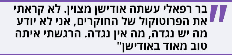 "היא עשתה אודישן מצוין. לא קראתי את הפרוטוקול של החוקרים, אני לא יודע מה יש נגדה, מה אין נגדה. אתה יודע, קראתי קצת מה שכתבו בעיתונים ובאתרים. הרגשתי איתה טוב מאוד באודישן וכמובן גם עם אסי. אם מסתכלים רק מהזווית המקצועית, היא צריכה לעשות את זה".