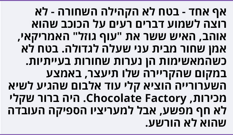בשיר הכי מפורסם שלו, אר. קלי שר שהוא מאמין שהוא יכול לעוף (I Believe I Can Fly). נראה שבשנים הקרובות הוא יוכל לבחון את היכולת הייחודית הזו על חומות של בתי סוהר, אחרי שבשבוע שעבר הסגיר את עצמו למשטרת שיקגו. הוא מואשם בעשרה סעיפי אישום של התעללות מינית בנסיבות מחמירות. האישומים כוללים מעשים מיניים באיומים והפעלת כוח על שלוש נערות בין הגילים 13-17. לאחרונה גם נחשף קיומה של קלטת - שנייה במספר - שבה נראה קלי מקיים יחסי מין עם קטינה בת 14. משפטו יחל בחודש מרץ, והוא ממשיך לטעון לחפותו. בשבועות האחרונים זה אמנם הסיפור הכי גדול באמריקה, אבל זה עדיין נראה מעט מדי ובעיקר מאוחר מדי, אחרי שבמשך 30 השנים האחרונות תלונות ופרסומים ציירו תמונה ברורה של קלי, בן 52 היום, כפדופיל ומתעלל סדרתי בנשים. הוא הצליח להתחמק בכל פעם מזרועות החוק, מכר לציבור סיפור חלופי וכבש אותו עם להיט נוסף.