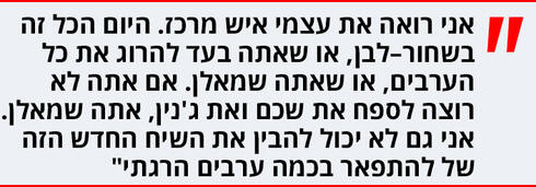 "אני נגד קואליציה של קיצוניים. לא משנה אם משמאל או מימין, אם זה כהנא או בל"ד. מדינת ישראל צריכה לחזור לנורמליות. לשפיות".