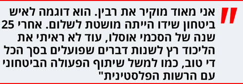 "את מחנות הפליטים והכפרים אני לא רוצה לראות. לא הייתי מגדיר את זה 'יחלק את ירושלים'. אם נחזיר אותם, יהיה לנו עדיין רוב העיר. אני גם לא מבין למה מתכוונים ב'שלום מלא'. נכון שצריך לתת לתהליך הזדמנות, אבל זה תהליך ממושך. רק בקצה שלו יהיו שתי מדינות לשני עמים. אני מאוד מוקיר את רבין, הוא דוגמה לאיש ביטחון שידו הייתה מושטת לשלום. אני מתגעגע אליו ומתגעגע לאריק שרון. הם היו מנהיגים ראויים. ובסוף, אחרי 25 שנה של הסכמי אוסלו, עוד לא ראיתי את הליכוד רץ לשנות דברים שפועלים בסך הכל די טוב, כמו למשל שיתוף הפעולה הביטחוני עם הרשות הפלסטינית. אני לא אוהב את המחשבה שטראמפ יהיה זה שינחית תהליך שלום על שולחננו, אבל כשיש ואקום, אז יש ואקום. ארבע שנים לא עשינו כלום, רק שרדנו. יבוא עכשיו טראמפ עם תוכנית, אולי נוראה, אולי טובה, אבל אנחנו יודעים הכי טוב מה נכון לנו".