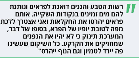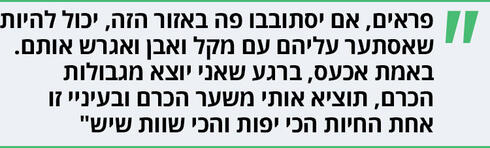 "כן, לגמרי. בתוך הכרם לא. כמעט כל מי שיסתובב בכרם יעשה פה נזק, אז אני אכעס עליו. זה יכול להיות בן אדם, ואני בסך הכל מחבב אנשים. פראים, אם יסתובבו פה באזור הזה, יכול להיות שאסתער עליהם עם מקל ואבן ואגרש אותם. באמת אכעס, אבל ברגע שאני יוצא מגבולות הכרם, תוציא אותי משער הכרם ובעיניי זו אחת החיות הכי יפות והכי שוות שיש. אני לא רוצה שייעלמו מהנוף של הנגב. מצד שני, צריך שהממשק יהיה נכון, צריך שאנחנו נשמור עליהם ושגם ישמרו עלינו".