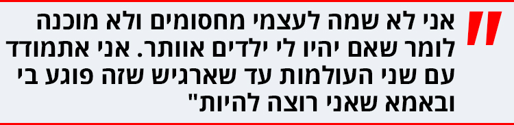 "אפילו לא לרגע. אני עוד אהיה אמא, זו אחת ההגשמות הכי גדולות שמצפות לי בהמשך הדרך".