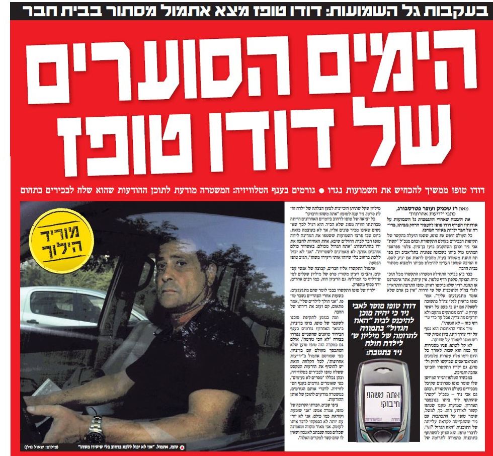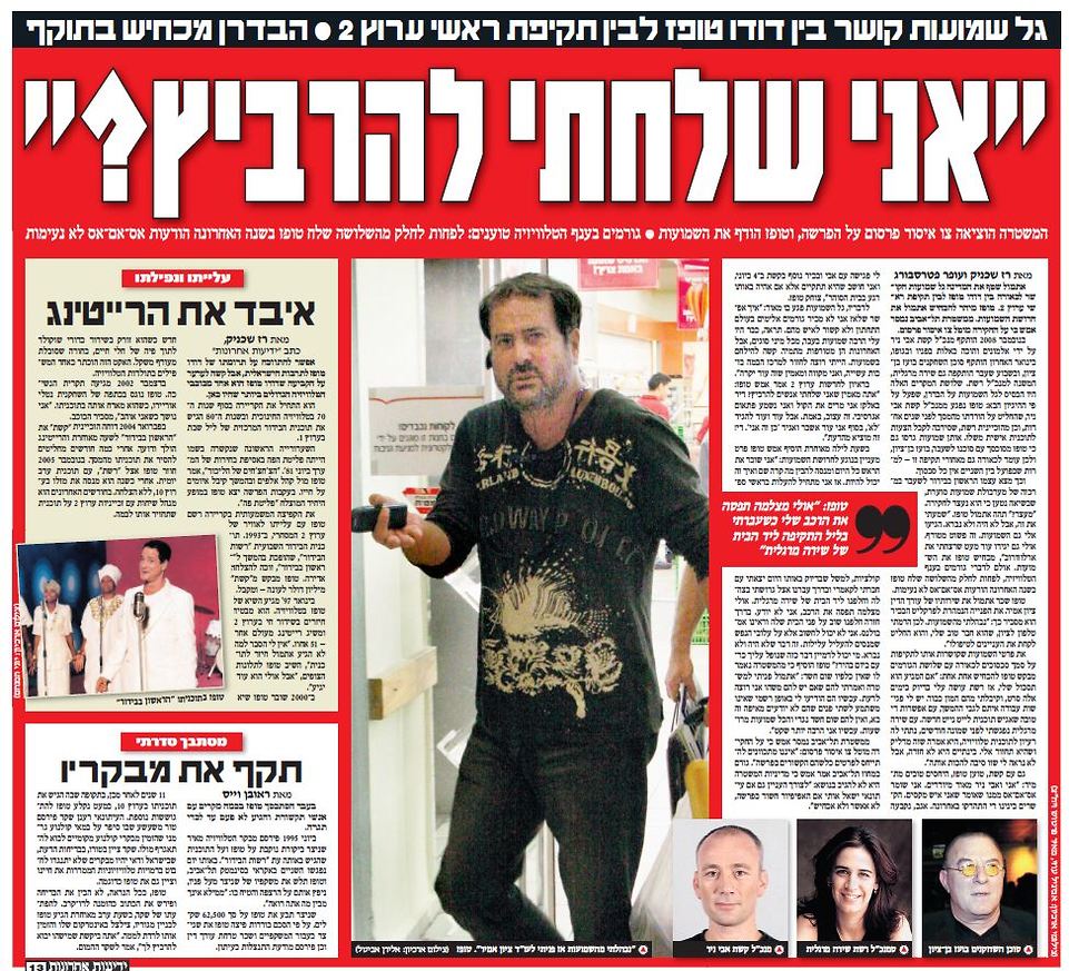 למעשה, בבוקר אותו יום טופז כבר כיכב על שער "ידיעות אחרונות". דווח שם על כך שהוצא צו איסור פרסום על חקירת תקיפתה של שירה מרגלית. הכותרת: "דודו טופז והתקיפות", ולצידה תמונתו של הבדרן וגם ציטוט - "עברתי ליד ביתה באותו ערב, אבל שאני ארביץ? דיר באלק! אני בלחץ נפשי, מרוב שאני אומר 'לא' בסוף אשבר ואגיד 'כן'".