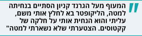 "נכון. בפעמים הראשונות שעשיתי את זה התפללתי שאגיע לאדמה בשלום. אתה חייב לנחות כשהגוף שלך בצורה של איקס, זו התנוחה היציבה ביותר, ולא הגעתי אליה בפעם הראשונה. רק אחרי כמה ניסיונות התחלתי ליהנות. אני זוכר שאמרתי לעצמי, 'וואו, אני עף, אני ציפור, זה אמיתי או שזה חלום?' צעקתי, צרחתי מתוך התרגשות ושמחה. הבעיה היחידה הייתה שמעוף הציפור הזה נגמר מהר מדי. מה זה חמישים שניות? אתה רק מתחיל ליהנות וזה כבר נגמר".