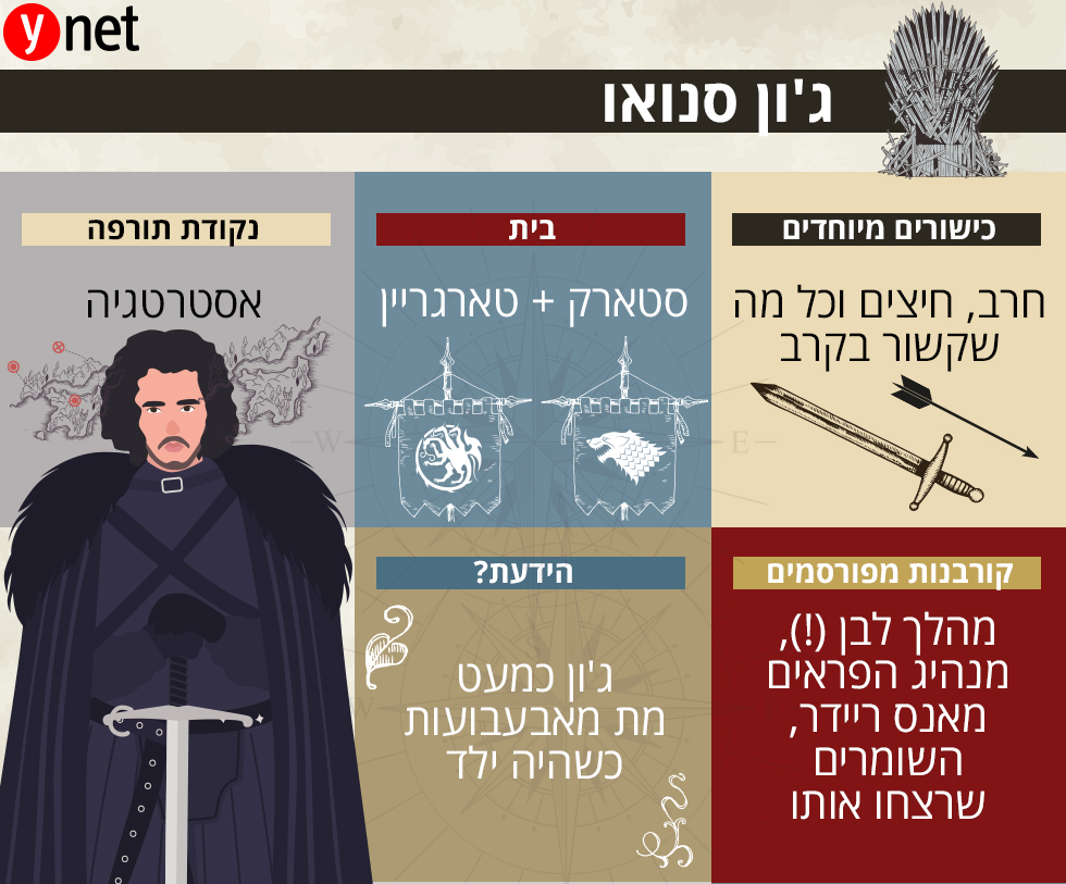 מהכבשה השחורה של משפחת סטארק הוא צמח ועלה עד שהוכתר למלך הצפון - ויש כס מלכות נוסף שעדיין מחכה לו. ג'ון סנואו הוא הלוחם הגיבור של "משחקי הכס", אבל יש לו נטייה להתאהב בנשים הלא נכונות, ותמיד בסוף צריך להציל אותו. האנשים שעושים את ווסטרוז - כתבה חמישית בסדרה