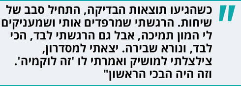בבוקר יום שני הוזמנה דסי לחדרו של פרופ' יניב, שהיה אז מנהל המחלקה. "דסי ישבה על ברכיי, עם הפנים לעבר הרופא שאמר 'אנחנו חושבים שיש לה לוקמיה, נעשה בדיקת מח עצם בהרדמה מלאה כדי לאשר את האבחנה'. השאלה הראשונה שיצאה לי מהפה הייתה מתי יפסיק לכאוב לה. הכאב שלה העסיק אותי יותר מהמילה לוקמיה, שלא הייתי בטוחה שהבנתי את משמעותה. כשהגיעו תוצאות הבדיקה, התחיל סבב של שיחות. קודם עם הרופאים, אחר כך עם האחיות. הרגשתי שמרפדים אותי ושמעניקים לי המון תמיכה, אבל גם הרגשתי לבד, הכי לבד, ונורא שבירה. בשני בצהריים השארתי את דסי לכמה דקות בחדר, יצאתי למסדרון, צילצלתי למושיק ואמרתי לו 'זה לוקמיה'. וזה היה הבכי הראשון".