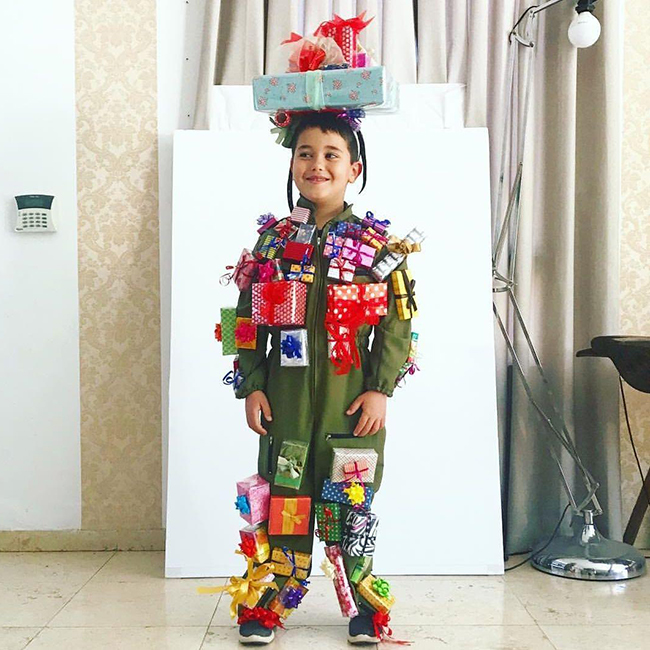 מיילו המתוק, בנו של גיל ריבה החליט להתחפש למתנה, יותר נכון - להמון מתנות קטנות. הכי מקורי שראינו עד עכשיו.