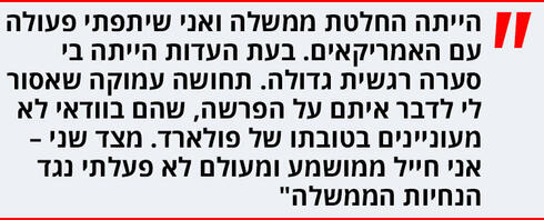 "זה היה רגע מאוד לא קל. הייתה החלטת ממשלה ואני שיתפתי פעולה עם האמריקאים. הם ידעו מי אני ומה שמי, ואני פעלתי על פי הנחיות היועץ המשפטי. בעת העדות הייתה בי סערה רגשית גדולה. תחושה עמוקה שאסור לי לדבר איתם על הפרשה, שהם בוודאי לא מעוניינים בטובתו של פולארד. מצד שני – אני חייל ממושמע ומעולם לא פעלתי נגד הנחיות הממשלה, גם אם חשבתי שצריך לנהוג אחרת."