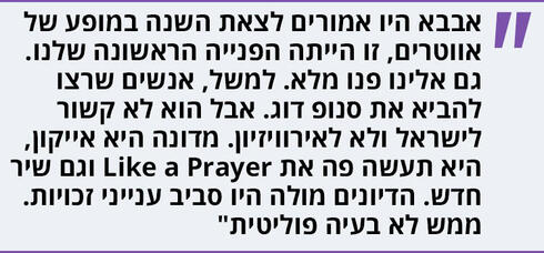 "מדונה היא אייקון, אחד האייקונים הכי גדולים במוזיקה, ישראלים נורא אוהבים אותה, היא הולכת לעשות פה את Like a Prayer שבדיוק חוגג 30 שנה".