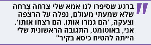 "ואז נפל לי האסימון שהאישה שהתקשרה היא מנהלת האתר והיא פנתה למשטרה והם התקשרו להורים לדווח שניסיתי להתאבד. הם רק לא אמרו למה. ההורים לא ידעו את הסיבה. ואני הרגשתי בגידה - שהמקום היחיד שהרגשתי בו מפלט, שאני יכול לדבר על הרגשות שלי, בגד בי. שברו לי את הלב. כעסתי על האישה הזאת שנים! בדיעבד אתה מבין שהאישה הזאת הצילה לי את החיים".