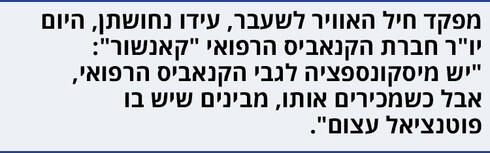 נחושתן: "אני מקווה שזה נכון בכל תחום, אבל אני מבין מאיפה באה השאלה. יש מיסקונספציה לגבי עולם הקנאביס הרפואי, אבל אחרי שמכירים אותו, מבינים שיש בו פוטנציאל עצום. הבת שלי רופאה בבילינסון, וברגע שפנו אליי שאלתי אותה מה דעתה. היא אמרה לי: 'תשמע, זה אמיתי, ולא רק שזה אמיתי - זה עושה לאנשים טוב במקרים שרופאים לא תמיד מצליחים'. בכל מקום שבו אני יכול לעזור לחולים, שם אהיה".