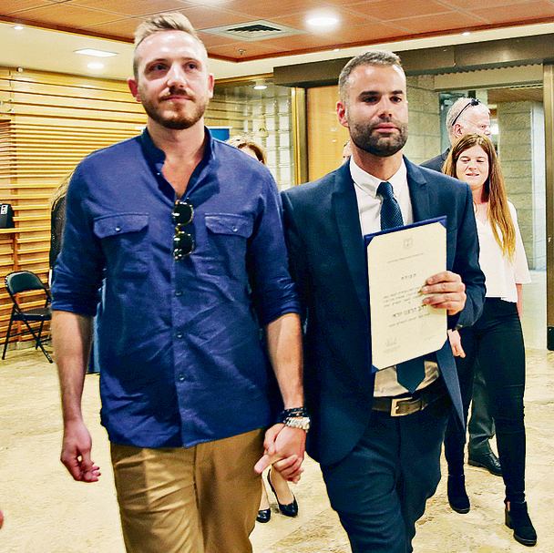 בתחום אחד הכנסת ה־21 כבר פתוחה יותר מכל קודמותיה: היחס לבני זוג של ח"כים להט"בים • מנכ"ל הכנסת קבע: מעתה התנאים שיקבלו בחירי ליבם של ח"כים מאותו המין יושוו לאלה של בעלים ונשים של ח"כים סטרייטים • בני הזוג יוזמנו לטקסים ולאירועים רשמיים ויורשו לנהוג במכוניות של הח"כים
