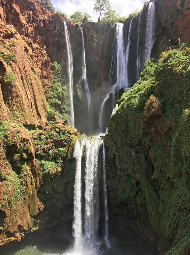 בגבול שבין האטלס התיכון לאטלס הגבוה, כשעתיים וחצי של נסיעה צפונה ממראקש, נמצאים מפלי אוזוד – מפלי המים הגבוהים ביותר ואולי היפים ביותר במרוקו. המים צונחים מצוק בגובה 110 מטרים דרך שלושה מפלסים אל בריכה טבעית. את הקניון העמוק שיוצר נהר אל-עביד מקיף חורש טבעי, ובו מסתובבים בחופשיות קופים מסוג מקוק ברברי. הקופים לא נושכים, אך יש להיזהר שלא יחטפו חפצים.