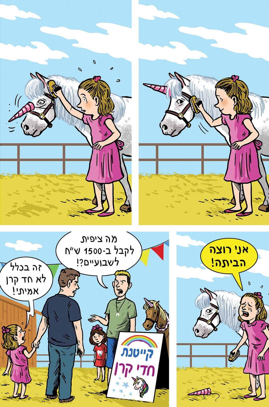 אבל לפני שבועיים הילדה הגיעה פתאום והכריזה: "אני רוצה קייטנת סוסים". אמרתי לה שהקיץ אנחנו לא משתגעים, אבל הילדה מיד הוכיחה - בווליום ובפיץ' וביכולת התמדה בשניהם לאורך זמן - שהיא דווקא כן, אז חיפשתי ומצאתי באזור הכפר הירוק קייטנה צנועה שמבטיחה להפגיש בין סוסים לילדים למטרות הברשה הדדית. כבר עמדתי לרשום אותה (כן, הם רושמים גם לסוסים) כשהילדה שוב התחרטה: "אני רוצה קייטנת קרקס", היא קיפצצה במקומה בהתרגשות והושיטה לנו איזה פְלייר שמישהו - חכה אני אתפוס אותך - חילק לילדים בכניסה לבית הספר.