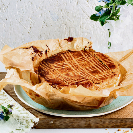 בצק עלים חמאתי משובח מקונדיטוריה מובחרת ישדרג את העוגה לרוממות צרפתית כמעט. אפשר לרכוש ברשתות קונדיטוריות מובילות כמו של “בן־עמי.”