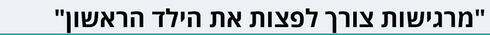 התחושות הללו היו שונות מאוד מאלה שחוותה בלידה הראשונה: "אם בילדה הראשונה הביאו לי אותה ממש אחרי הלידה והיה חיבור מיידי, הנקתי בחדר לידה, כאן כל היחס היה שונה, סיטואציה אחרת, הרגש היה מנותק. לא הייתי בטוחה שהוא שלי עד שאבא שלי הגיע עם סרטון שבו הוא צילם את כל הליווי שלו מהרגע שנולד. הכול נראה מואר ושמח, וזה שונה ממה שעבר לי בראש".