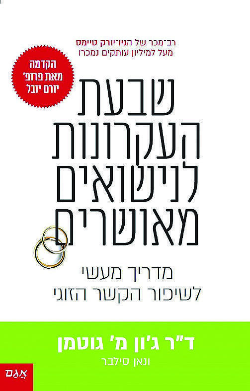 הספר "שבעת העקרונות לנישואים מאושרים" שכתב ד"ר גוטמן נוחת עכשיו בארץ אחרי שהפך לרב-מכר היסטרי בארצות-הברית, ועבר התאמה לטמפרמנט הישראלי. ולטמפרמנט יש פה הרבה מקום: לפי הגוטמנים, מסתבר שאפשר לנבא גירושים באמצעות מדדים פיזיולוגיים בלבד. אם הדופק שלכם עולה מעל מאה פעימות בדקה כשאתם רבים - בהנחה שאתם לא עושים את זה תוך כדי ג'וגינג - וזה קורה לכם בתדירות גבוהה, יש מצב שאתם בדרך לרבנות. מה גם שאם הדופק שלכם גבוה ממאה פעימות בדקה, סביר להניח שממילא פשוט לא תצליחו להקשיב למה שבן הזוג אומר לכם, גם אם תתאמצו. המלצת המומחים: לקחת 20 דקות מנוחה כדי להוריד את הדופק ולהרגיע.