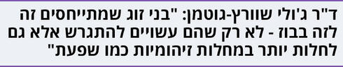 ג'ולי: "הרבה פעמים גברים חושבים שכדי להיות אבות טובים הם צריכים להתחיל לעבוד יותר קשה כדי לפרנס את המשפחה, אז עובדים קשה יותר ונעדרים יותר זמן מהבית - מהאם והילד. בינתיים, האמא תקיף את עצמה בנשים אחרות, באמא שלה, בחמות ובחברות טובות, ולכן ייווצר מצב שבו האב והאם לא מבלים מספיק זמן יחד עם התינוק והמרחק הרגשי בין ההורים יגדל משמעותית - מה שעשוי להוביל למשבר. האבות בהחלט מרגישים שמחה וחווים את השינויים של הסיטואציה החדשה אבל הרבה פעמים הם לא באמת מצליחים להעריך את זה, בגלל שהם לא מעורבים מספיק בגידול התינוק".