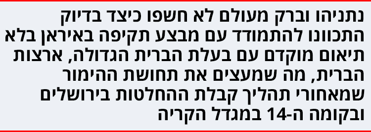 ספק אם לנתניהו ולברק היתה לכך תשובה.