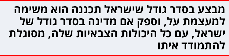 הדיון הסתיים. נשמעו דעות, הערכות, אפשרויות פעולה ברצועה, אבל לא התקבלו החלטות ספציפיות. השרים היו בדרכם החוצה. ראש הממשלה, כששר הביטחון לצדו, ביקש מהרמטכ"ל אשכנזי ומראש המוסד דגן להצטרף אליו. נתניהו פנה לאשכנזי: "הרמטכ"ל, אני מבקש שתעביר את הצבא לכוננות פ+30". משמעות הבקשה היתה ברורה: זו דרגת הכוננות הגבוהה ביותר בצבא; דריכת צה"ל לקראת פעולה קרובה באיראן.