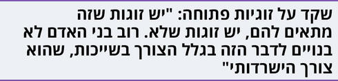 "בהחלט. אם יהיה שלום במדינה, יהיה גם שלום בין בני זוג".
