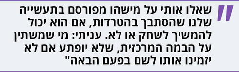 עכשיו הוא מרצין. "הפצועים האלה לא יצאו לי מהראש. זה לא עזב אותי. חלומות עליהם, מחשבות באמצע היום. כל מי שקורא למלחמה צריך לזכור שככה היא נראית! כל הילדים האלה, שהחיים שלהם תופסים תפנית או נהרסים, והאמהות והאבות והאחים שלהם, שנהרסים יחד איתם. אז לא כל כך מהר צריך לצאת לקרב.