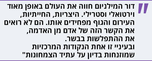 "בטח. תחשבי איפה העולם היה בשאלות אחרות לפני 40־50 שנה. אלו תהליכים מאוד מהירים. תחשבי מה עשה לעולם הטלפון החכם. תחשבי כמה רגעים קומיים של 'סיינפלד' בכלל לא רלוונטים היום כשיש טלפון נייד. השאלה היא רק מה יהיה הטריגר שיגרום לכך שהאידיאולוגיה תתפוס, הרי תהליכים היסטוריים הם לא ליניאריים. כשיש תנאים כלכליים מתאימים, זה יכול להיות מפץ אידיאולוגי בעקבות אסונות טבע איומים, בזכות חידוש טכנולוגי דרמטי או בעקבות מנהיג כריזמטי. זה נכון שיש עוד צרות, בטח בישראל, אבל מספיק טריגר אחד רציני כזה בשביל לשנות את כל ההסתכלות העולמית".