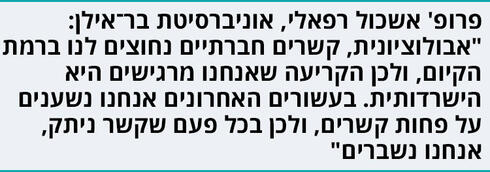 אבל, לדברי רפאלי, הסיפור הזה לא נגמר בביולוגיה. "מבחינה פסיכו־סוציולוגית, ניתן לדבר על כך שבעשורים האחרונים אנחנו נשענים על פחות ופחות קשרים חברתיים, ולכן כל קשר מקבל משמעות", הוא מסביר. "אם פעם היינו מחוברים למארג שלם של אנשים אחרים במסגרת שבט או כפר שלם, הרי שהיום אנחנו נתלים בקשרים בודדים ולכן בכל פעם שקשר כזה ניתק, אנחנו נשברים יחד איתו. המשמעות ההישרדותית והמשקל הנפשי הם הרבה יותר גבוהים בהשוואה לעבר הרחוק".