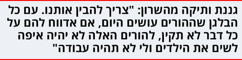 "צריך להבין אותנו", אומרת גננת ותיקה, מגן באזור השפלה. "עם כל הבלגן שההורים עושים היום, אם אדווח להם על כל דבר לא תקין, להורים האלה לא יהיה איפה לשים את הילדים ולי לא תהיה עבודה. ספציפית אצלי, ברגע שאני מזהה אשת צוות שהיא אפילו חסרת סבלנות, אני מחליפה אותה בלי לעדכן את ההורים".