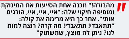 למחרת, מתברר שאחד האבות ראה במצלמות את בתו – בת שמונה חודשים – מונחת על נדנדה שתלויה מהתקרה בתינוקייה במשך שעות ברציפות. הסייעות ניסו לטעון שהיא פשוט בוכה כשמניחים אותה על הרצפה אבל הוא, בצדק, דרש שיימצא עבורה פתרון אחר. בהמשך אותו היום, אל מול עיניי, חטפה התינוקת האומללה מטר של נאצות ויחס שהותיר אותי המומה. "מהבולה!" מכנה אותה אחת הסייעות ומוסיפה חיקוי: "איי, איי, איי, הורגים אותי". אחר כך היא מרימה את קולה: "תתאבדי! תתאבדי! מה קרה? רוצה למות לנו? ניתן לה מוצץ, שתשתוק, איזה ילדה זאת".
