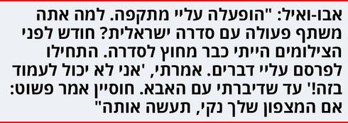 אבו־ואיל: "כשאני מקבל טלפון ממי שאני לא בקשר יומיומי איתו, אני מבין שיש לו משהו על ערבים. בדרך כלל אני עונה, 'לא', וגם לוקח לי זמן לחזור (צוחק). הפעם זה היה יוסף סידר. התחלתי לחשוב: מה ליוסף ולערבים? סיקרן אותי. ולפני שהספיק לספר לי מה קורה, מצאתי את עצמי נוסע איתו ועם חגי למשפחה, עם עוד צבא של תחקירנים, כשאני לא מבין אם אני עושה את זה או לא".