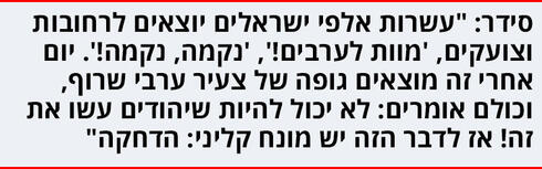 סידר: "הבנתי שמצאו נער פלסטיני שרוף. לא חשבתי שהרגו אותו ערבים ושהוא גיי, אלא מה שרוב האנשים הדחיקו: זו תוצאה של הידרדרות נוראית. ועכשיו הכול יוצא משליטה".