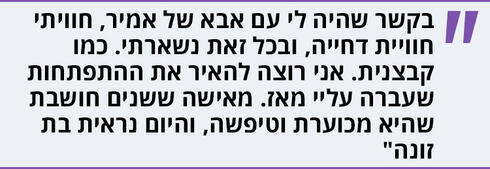 ידעתי שאהיה שחקנית, לא חשבתי שאני מיועדת להיות אמא. רק כשנכנסתי להיריון בטעות, התחלתי לחשוב על זה ברצינות. אולי אני כן צריכה להיות אמא. סיפרתי לאהרל'ה ברנע שאני בהיריון ממנו. בדרכו העילגת הוא נתן את ברכתו. הוא לא האמין כל כך שזה אכן ממנו, אבל אמרתי לו: 'זה או אתה או יהודית אחת, שהיה לי איתה באותה תקופה סטוץ'. אחרי זה הוא התעשת ואמר, תעשי מה שאת רוצה, אבל אני לא חלק מזה. התלבטתי, התייעצתי עם המשפחה והחברים, וכולם אמרו לי: היקום מסמן לך שהילד הזה צריך לבוא לעולם דרכך. האמת, הופתעתי מהחיבור שלי לאימהות. ברגע שהחזקתי את אמיר בידיים, הבנתי בשנייה שהוא מה שמגדיר מחדש את המושג אהבה. הסתכלנו אחד על השני בעיניים, והוא נתן לי מבט שאומר, 'אל תדאגי אמא, אני יודע מה את עוברת, ואני מתכוון להתחשב'.