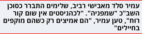 אגב, בהמשך יתאכזב עמיר מהמתנחלים. "הם מרגישים נרדפים", אמר. "הם רוצים לגיטימציה, אז הם שונאים אותי עכשיו. אף אחד מהם לא עושה שום דבר קיצוני מרוב הפחד".